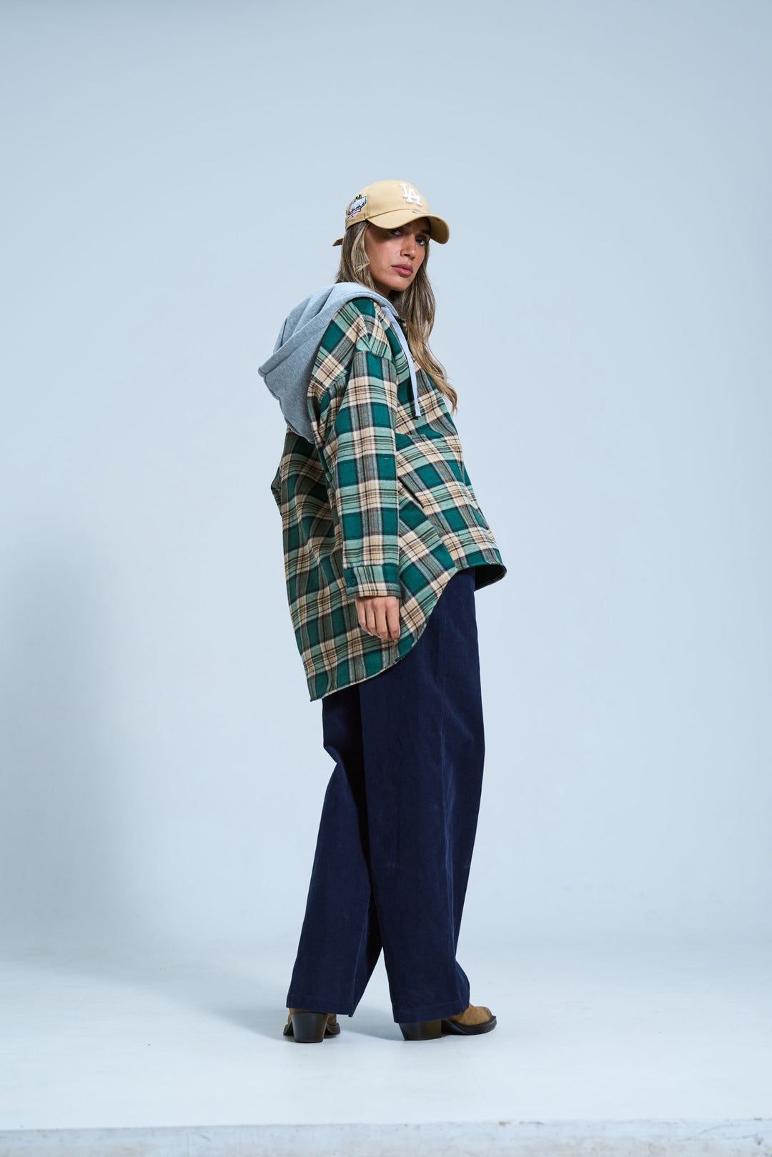 ג׳קט משבצות בשילוב כובע מתאים לכל המידות