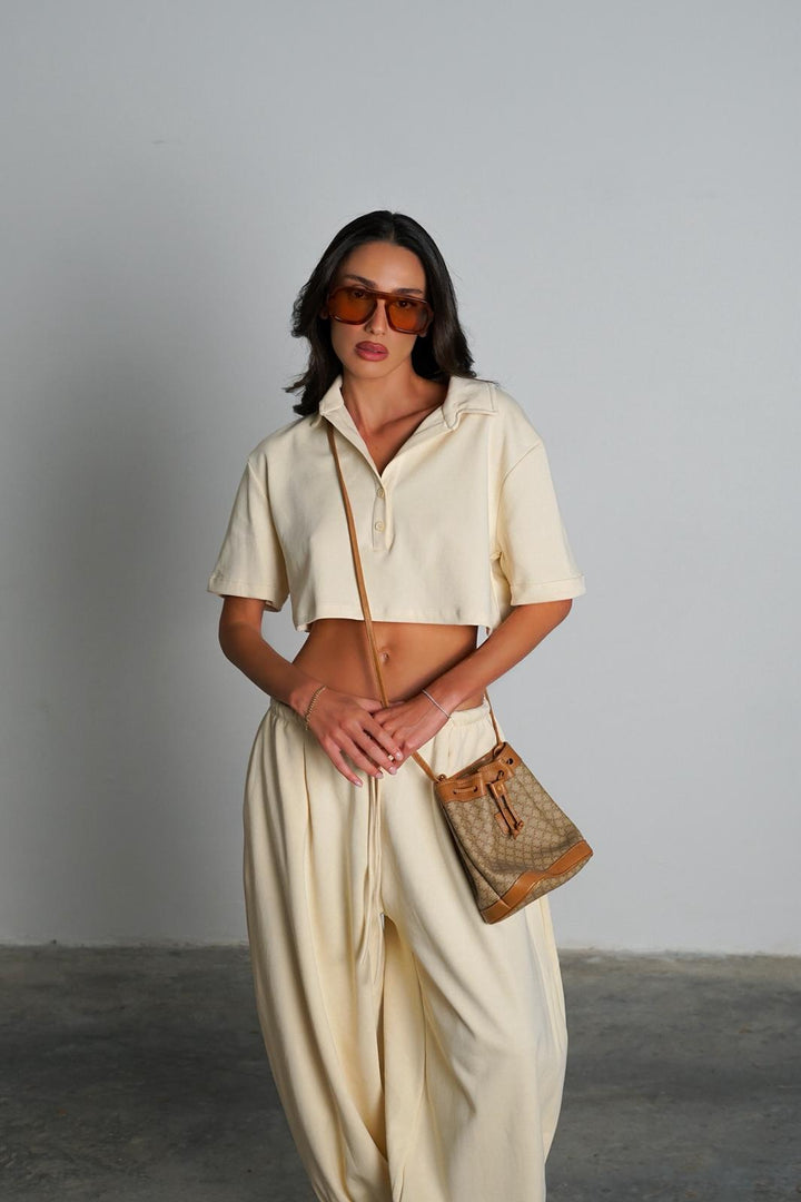 חליפת פוטר קלילה עם מכנס גומי במותן וכיווץ ברגל